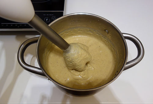 После этого снять с огня, размельчить блендером до однородной кремовой консистенции.