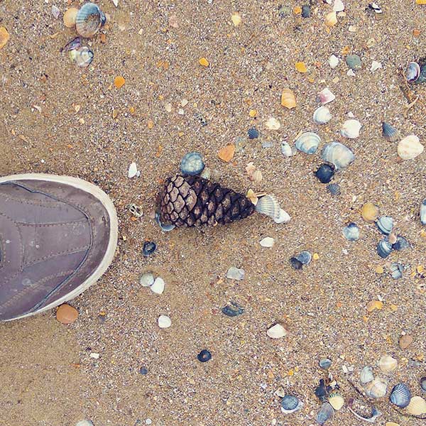 Мальчик пинает шишку,