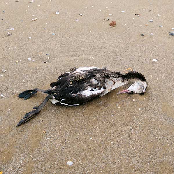 Дохлая утка уткнулась в песок,